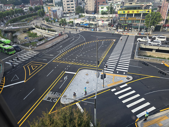 원활한 교통 흐름을 위해 노면에는 색깔 유도선과 안전표지 등 도로표지를 도색하고, 신호·과속 단속카메라와 보행자 방호 울타리 등 안전 시설물도 새로 설치해 보행 안전 확보에도 힘썼다.