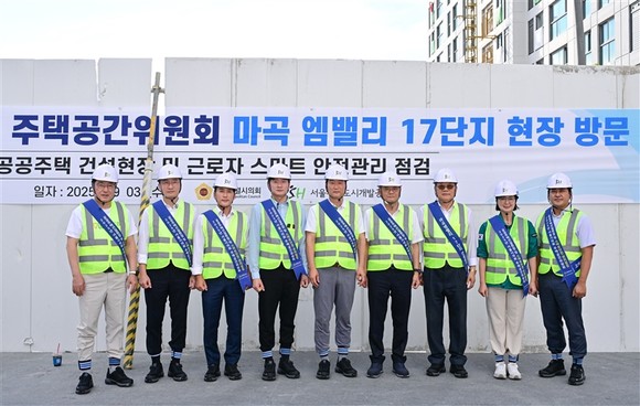서울특별시의회 주택공간위원회(위원장 김태수, 국민의힘, 성북4)는 제332회 임시회 기간인 9월 3일(수), 서울주택도시개발공사로부터 주요 현안 관련 업무보고를 받은 뒤 강서구 마곡엠밸리 17단지 건설현장을 방문하여 온열질환 대응 모의훈련 및 스마트 안정장비 시연 등 안전기본수칙을 집중 점검했다.