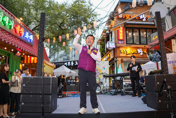 서울 동대문구(구청장 이필형)는 5일 회기역 파전골목 일대에서 ‘제1회 회기 파전 가요제’를 성황리에 개최했다. 서울시「2025년 골목상권 행사 지원 사업」에 선정된 이번 행사는 휘경 골목상권 활성화를 위해 마련됐다.