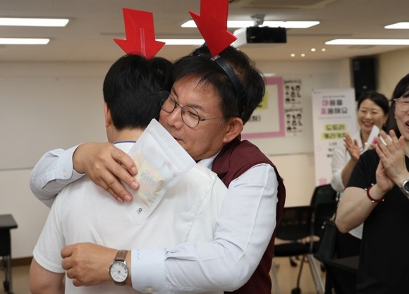 박강수 마포구청장이 청소년을 따뜻하게 안아주고 있다. 사진=마포구청