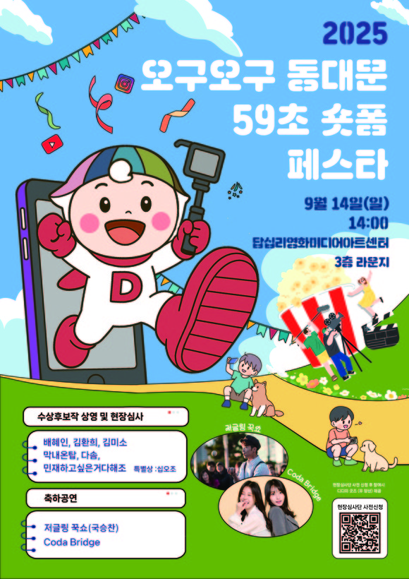 서울 동대문구(구청장 이필형)는 구민과 방문객이 직접 발굴한 동대문구의 숨은 명소를 소개하는 ‘59초 숏폼 공모전’의 수상작을 심사하고 모두가 함께 즐길 수 있는 ‘오구오구 동대문 59초 숏폼 페스타’를 오는 14일 개최한다고 밝혔다.