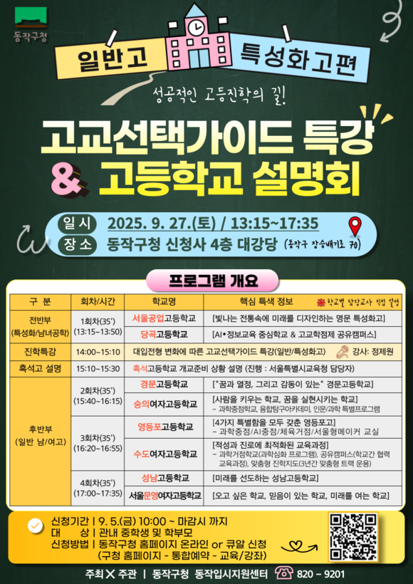 “성공적인 진학의 길 인도한다” 동작구, ‘고교 선택 가이드 특강 및 고교 설명회’ 개최