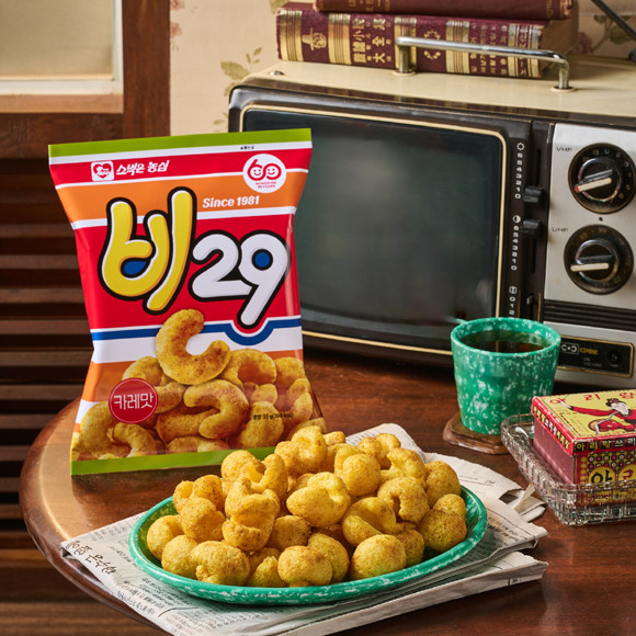 농심 비29는 1981년 출시된 카레맛 스낵이다. 농심은 그동안 꾸준히 이어진 소비자의 재출시 요청에 힘입어 지난 2월 편의점 CU에서 비29를 재출시했다. 추억이 담긴 진한 비프 카레맛과 초승달 모양을 살렸다.
