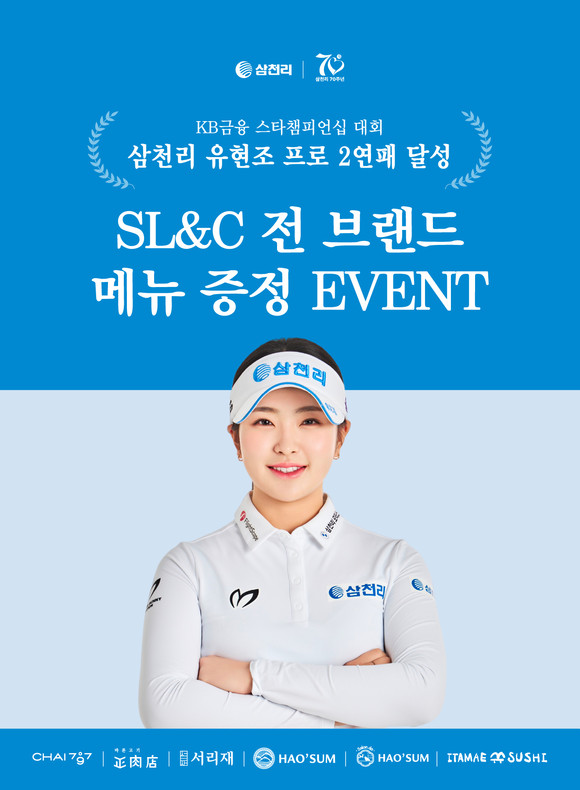 삼천리그룹이 삼천리 스포츠단 유현조 프로의 올 시즌 첫 우승과 동일 대회 2연패 달성을 기념하고자 15일까지 SL&C 외식 브랜드 메뉴 증정 이벤트를 펼친다.