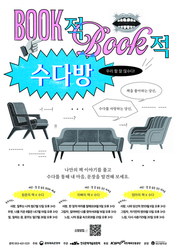 주요 프로그램으로는, 9월 17일(수) 구수산도서관, 대구문학관, 대구광역시립서부도서관이 함께하는 <시끌시끌(詩글詩글) 문학 피크닉>은 참여자들과 책을 통해 소통하며, 자신을 글로 표현해보고, 즉석사진으로 오늘의 나를 기록하는 등 문학과 일상의 경계를 허무는 체험형 행사로 구성된다.