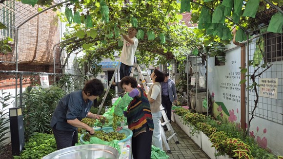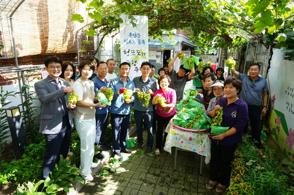 서울 성북구(구청장 이승로) 종암동주민자치회가 지난 8일 종암동주민센터 뒤편 화단을 비롯한 마을 곳곳에 조성된 청포도나무에서 ‘청포도 수확 및 나눔 행사’를 열었다. 이번 행사는 종암동주민자치회 생활환경분과 주도로 진행됐으며, 생활환경분과 위원들과 주민자치회 위원 15여 명이 참여해 정성껏 가꾼 청포도를 직접 수확했다.