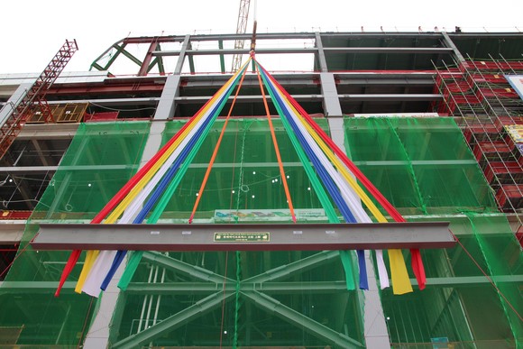 롯데건설이 9일 인천 송도국제도시 첨단산업클러스터에 건설 중인 롯데바이오로직스 송도 바이오캠퍼스 제1공장의 상량식(上梁式)을 개최했다.