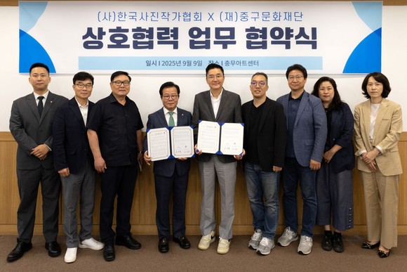 협약식에는 조세현 중구문화재단 사장과 유수찬 (사)한국사진작가협회 이사장을 비롯해 양 기관 주요 관계자들이 참석했다. 협약 주요 내용은 ▲재단의 기획전 관람료 할인 및 특별 초청 제공 ▲협회의 재단 전시·프로그램 홍보 및 회원 참여 지원 ▲양 기관이 합의한 협력사업 및 공동 발전방향에 대한 협의·실행 등이다.
