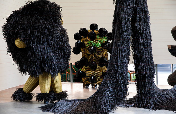 《의사擬似-하트랜드》는 작가가 지난 25년간 매진해온 조각 및 설치 작품을 세인트루이스 현대미술관의 로비와 주요 전시실에 펼친다. 〈암혈巖穴 주위 음지 생물Umbra Creatures by Rockhole〉(2017–2018)은 총 일곱 점으로 구성된 작가의 가장 복합적인 조각군으로, 다양한 문화와 민속 신화에 등장하는 불가사의한 존재들을 연상시킨다. 다양한 문화권을 넘나드는 작가의 개인적인 경험과 초국가적인 시선에 기반한 이 작품은 서로 다른 기법, 재료, 오브제를 결합하여 문화적 혼종성에 대한 지속적인 관심을 보여준다. 일부 조각은 공중에 매달려 촉수가 달린 뱀이나 거대한 바다 생물을 연상시키는가 하면, 무성한 털이나 직조, 금속으로 표면이 뒤덮인 채 바퀴로 직립한다.
