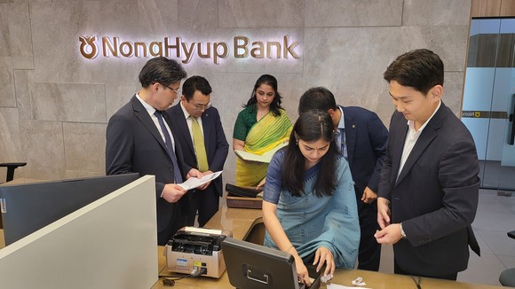 농협은행 이청훈 글로벌사업부문 부행장이 인도 노이다 지점을 방문하여 직접 시재검사를 하고 있다.사진=NH농협은행