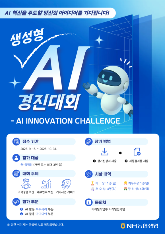NH농협생명(대표이사 박병희)이 ‘생성형 AI 경진대회’를 개최한다고 15일 밝혔다.