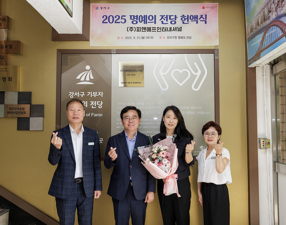 진교훈 구청장은 “귀한 나눔을 실천해 주신 ㈜피앤에프인터내셔널에 깊이 감사드린다”며 “소중한 나눔이 오래 기억될 수 있도록 기부자에 대한 예우를 강화해 나가겠다”고 말했다.
