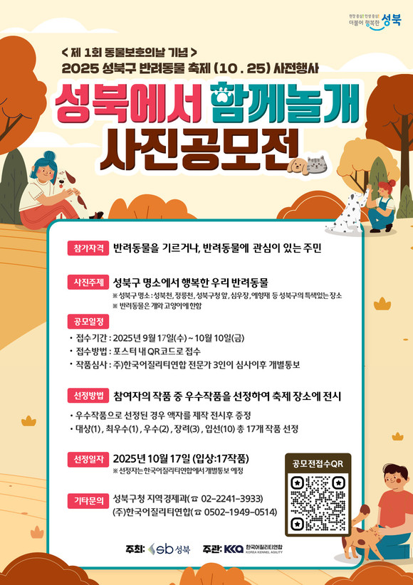 이번 공모전은 ㈜한국어질리티연합이 주관하며, 오는 10월 열리는 2025 성북구 반려동물 축제 ‘성북에서 함께놀개’의 사전행사로 마련됐다. 반려동물과의 일상을 공유하며 반려인과 비반려인이 함께 공감할 수 있는 기회를 제공하는 것이 목적이다.