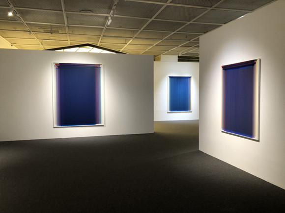 먼저 전시장에 들어서면 작가의 대표 겹회화 작품들을 만날 수 있다. 화면 위에서 부딪힘 없이 겹쳐지는 색들은 자연스럽게 조화를 이루며 보는 이로 하여금 마음에 잔잔한 평온함을 느끼게 한다.