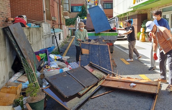 장애인연합회(회장 박근용)는 해충 방역을 실시하고, 소속 봉사자 13명과 함께 청소행정과와 협조하여 2.5톤 차량 4대 분량의 쓰레기를 처리했다. 이후 장판 교체, 싱크대와 찬장 설치 등 긴급 환경 공사가 이어졌으며, 10일에는 도배 작업도 완료했다.