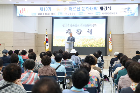 서울 구로구(구청장 장인홍)가 이달 16일 구청 강당에서 제13기 ‘일소일소(一笑一少) 어르신 문화대학’ 개강식을 개최했다.
