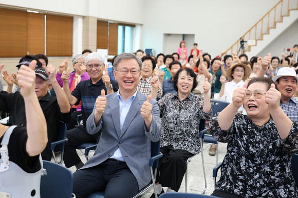 이날 개강식에는 장인홍 구로구청장을 비롯해 관내 어르신 등 150명이 참여해 초대가수 이미영의 식전 공연과 KBS 공채탤런트 황선정의 ‘신바람 나는 청춘노래교실’ 강의를 수강했다.