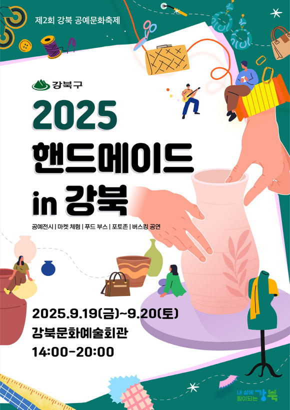 서울 강북구(구청장 이순희)는 오는 9월 19일과 20일 이틀간 강북문화예술회관에서 제2회 강북 공예문화축제 ‘2025 핸드메이드in강북’을 개최한다.