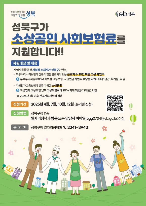 서울 성북구(구청장 이승로)가 오는 10월 13일부터 17일까지 2025년 ‘성북구 소상공인 사회보험료 지원사업’ 3분기 신청 접수를 진행한다.