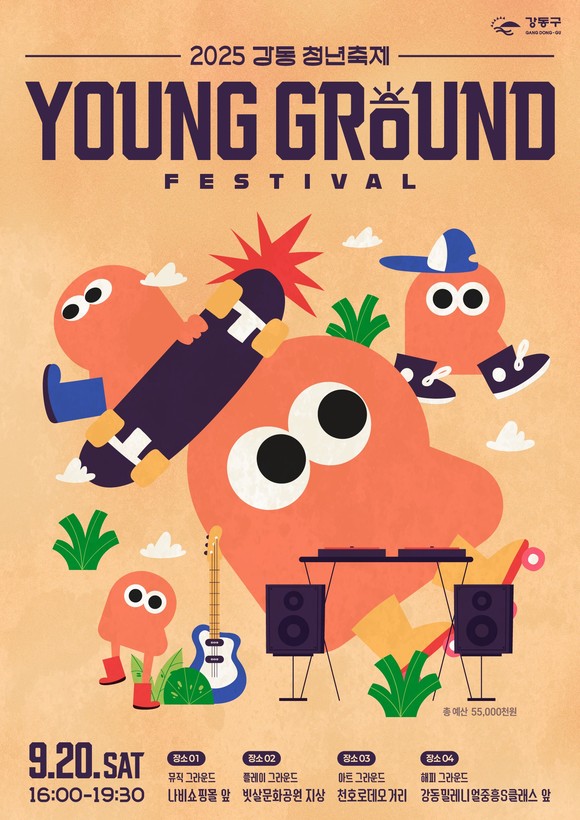 ‘영 그라운드(Young Ground)’는 ‘젊음(Young)’과 ‘청년들의 놀이터(Home Ground)’를 결합한 이름이다. 이번 축제는 천호로데오거리를 청춘 문화예술이 어우러지는 공간으로 꾸미고, 청년 예술인의 참신한 에너지로 거리에 활력을 불어넣기 위해 마련됐다.
