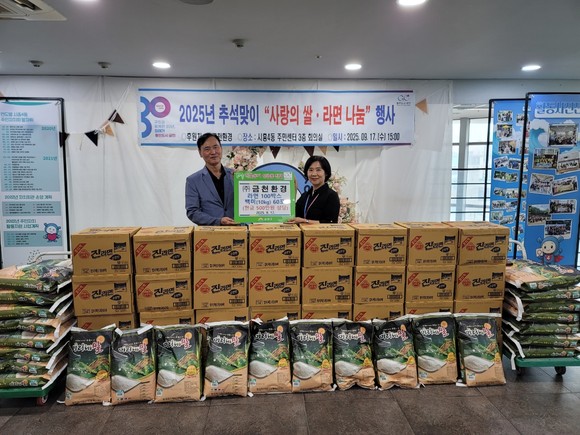 서울 금천구(구청장 유성훈)는 지난 17일 ㈜금천환경(대표 김재식)에서 시흥1동 주민센터와 시흥4동 주민센터에 취약계층을 위한 추석맞이 물품을 기탁했다고 밝혔다.