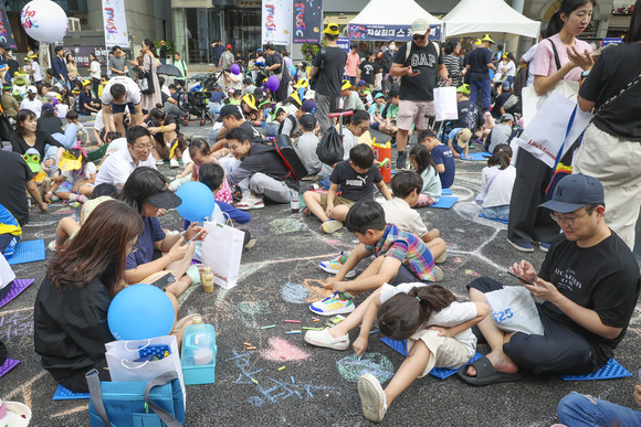 올해도 백석예대 디자인미술학부 학생들이 사전 밑그림 작업을 지원해 행사를 더욱 풍성하게 꾸몄다. 형형색색 10만여 개의 분필로 그린 그림이 아스팔트를 가득 메우며, 삭막한 도시는 단숨에 다채로운 상상력의 놀이터로 탈바꿈된다.