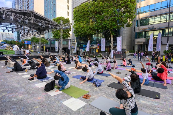 28일 오전 7시, 빌딩 숲 사이 반포대로가 특별한 힐링 공간으로 변신한다. 작년에 이어 두 번째로 개최되는 <서리풀 굿모닝 요가>에서 푸른 하늘과 음악을 벗 삼아 아침을 깨운다.