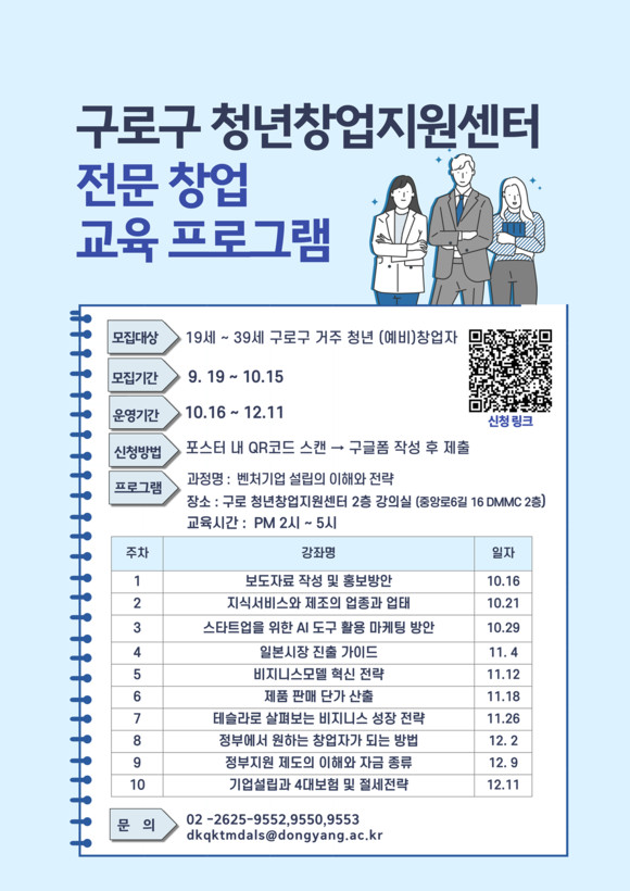 장인홍 구로구청장은 “창업을 준비하는 청년들이 이론과 실무를 함께 갖출 수 있도록 체계적인 교육을 마련했다”며 “앞으로도 청년 창업이 뿌리내릴 수 있도록 지속적인 지원을 이어가겠다”고 말했다.