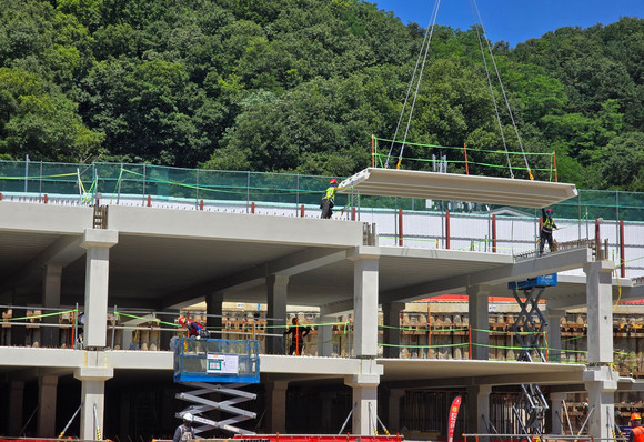 롯데건설이 공동주택 현장에서 PC 공법으로 지하주차장을 시공하고 있다. 사진=롯데건설