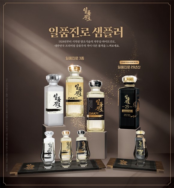 이곳에선 ‘일품진로 25’ ‘일품진로 오크25’ ‘일품진로 오크43’ 등 일품진로 3종의 샘플러를 판매하며, 8000병 한정 출시한 최상급 프리미엄 증류주 ‘일품진로 25년산’의 샘플러도 한정 판매할 예정이다. 이달 25일부터 내달 26일까지 1개월간 운영한다.