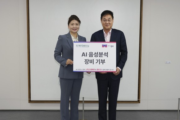 서울 종로구(구청장 정문헌)는 9월 22일 구청장실에서 인공지능(AI) 안전도시 리빙랩 사업에 필요한 음성감지 CCTV 3대(1,400만 원 상당)를 기증한 ㈜크랜베리에 감사장을 수여했다.