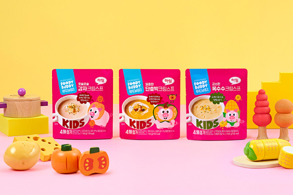낯선 환경에서 입맛이 까다롭거나 많이 먹지 않는 아이들 식사 역시 부모의 큰 고민이다. 이런 상황을 고려해 하림의 어린이식 브랜드 ‘푸디버디’는 영양과 기호를 반영한 ‘어린이 크림스프’ 3종을 출시했다. 감자, 단호박, 옥수수 등 각각의 원물 재료를 곱게 갈고 국산 1급A우유를 더한 제품이다. 150g 소용량 파우치 형태로, 상온 보관이 가능하다.