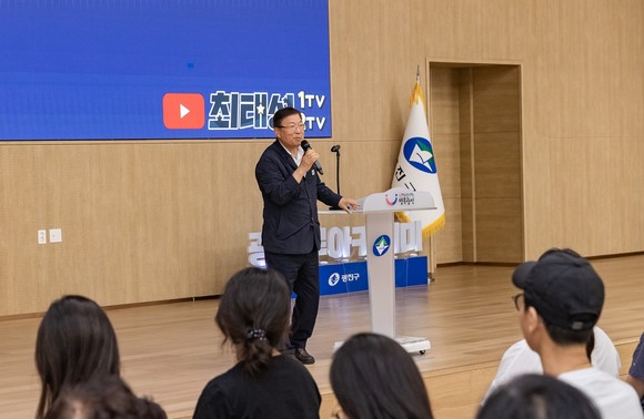 지난 6월 17일 상반기 광나루아카데미에 참석한김경호 광진구청장. 사진=광진구청