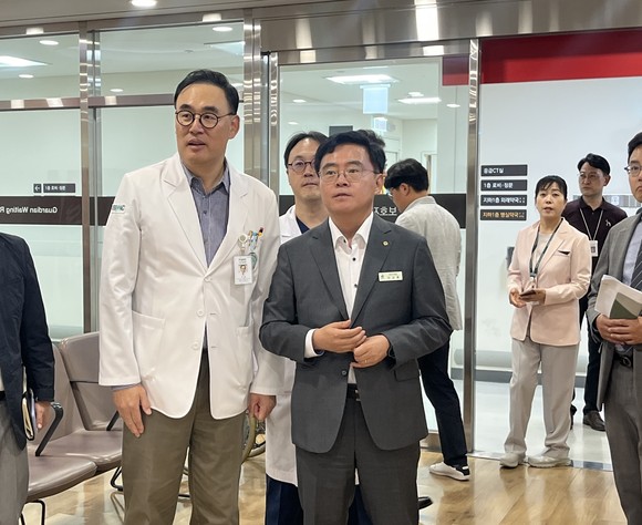 병원에 도착한 진 구청장은 가장 먼저 추석 연휴 기간에도 주민의 안전을 위해 헌신하는 의료진에 감사와 격려를 전했다.