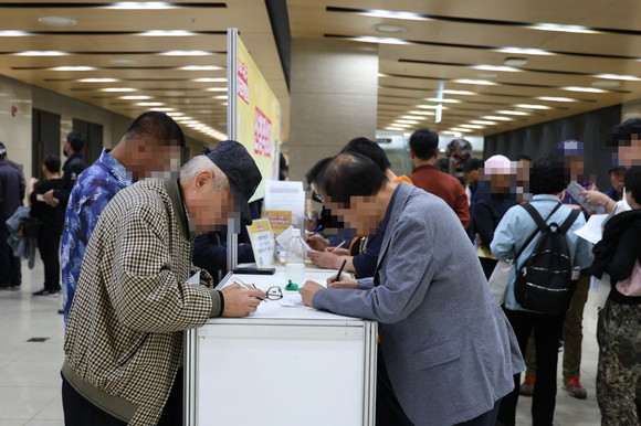 지난해 열린 일자리박람회에서 구직자들이 신청 서류를 작성하고 있다. 사진=구로구청
