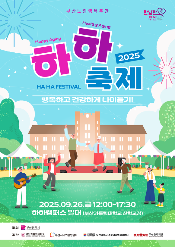 열정으로 빛나는 인생 2막, 시니어 밴드가 뭉쳤다. 부산문화재단(BSCF, 대표이사 오재환)은 오는 9월 26일부산가톨릭대학교 신학 교정 하하(HAHA) 캠퍼스에서 어르신들을 위한 특별한 문화예술축제「2025 하하 페스티벌 – 하하 밴드십」을 개최한다.