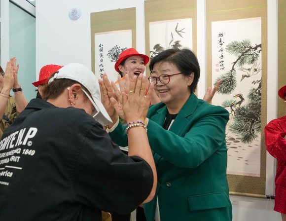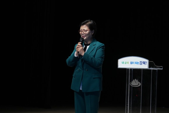 이순희 서울 강북구청장이 24일 강북문화예술회관 강북진달래홀에서 열린 ‘2025 자치회관 프로그램 발표회 및 작품 전시회’에 참석해 주민들과 소통하며 성과를 축하했다.