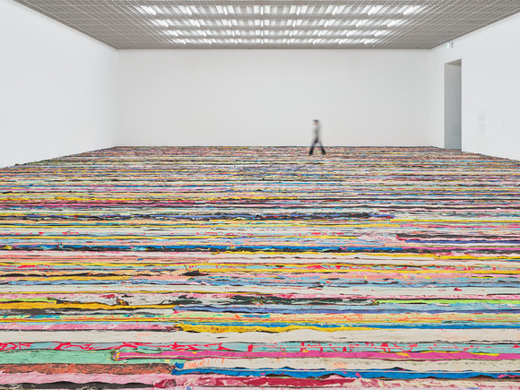 전시장 초입, 약 600제곱미터에 달하는 바닥 전체를 뒤덮는 대형 설치 작품 ‘떠오르다(Float), 2019’는 관람객을 수동적인 감상자에서 능동적인 참여자로 전환시킨다. 수백 개의 찢어진 종이와 끈을 이어 붙인 작품 위를 '걷는' 행위는, 그의 예술적 태도인 'Keep Walking'을 직접 경험하게 하며, 사회적 차별과 억압의 지형 위를 버티고 나아가야 하는 주체성의 선언과 그 미묘한 변형을 작품의 일부로 남긴다.