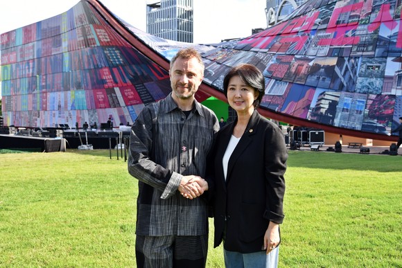 제5회 서울도시건축비엔날레 개최를 하루 앞둔 9월 25일(목) 옥재은 서울시의원(중구2, 국민의힘)은 세계적인 건축가이며 총감독인 토마스 헤더윅과 함께 이번 비엔날레의 주요 행사장 중 하나인 송현광장(열린송현녹지광장)을 방문하여 현장 점검에 나섰다.
