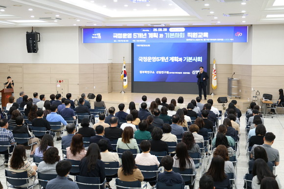 이날 교육에는 국정기획위원회 전문위원으로서 현 정부의 국정운영 5개년 계획 수립과 국정과제 발굴에 핵심적인 역할을 한 신영민 박사가 강사로 나서 국정 5개년 계획의 주요 목표와 방향을 설명하고, 기본사회 개념과 추진 배경, 지자체의 정책 연계 사례를 소개했다.