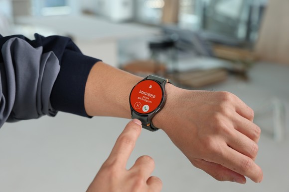 근무자가 밀폐 공간에 고립되거나 화재 발생 등 긴급 상황을 인지했을 경우, ‘갤럭시 워치’의 SOS 버튼을 통해 즉시 알림을 전송할 수 있으며, 관리자는 위치 확인과 음성통화를 통해 대응을 지원한다.