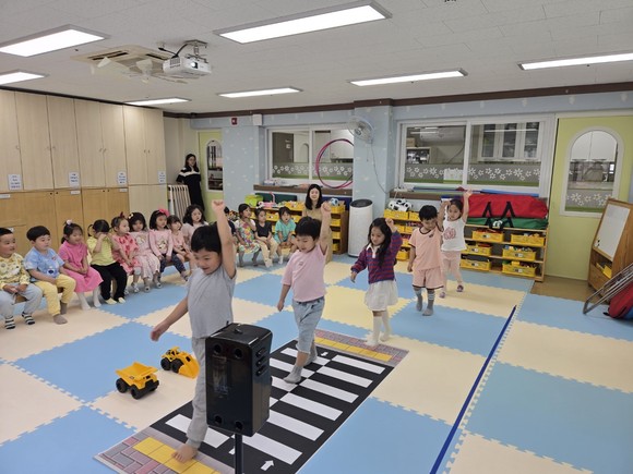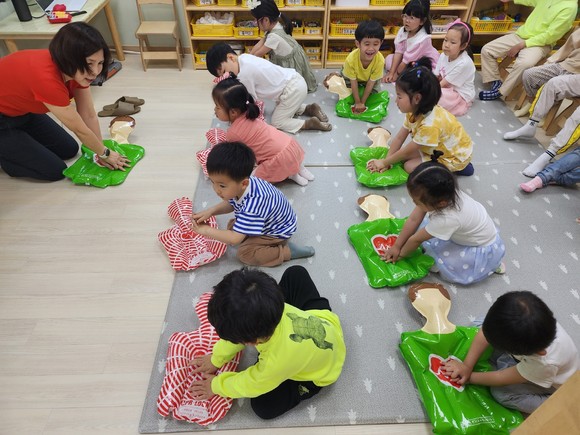 어린이집에서 아이들이 심폐소생술 교육을 받고 있다. 사진=금천구청