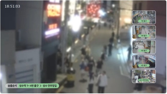 성수역 4개 출구 포함해 연무장길까지 영상 송출 지점 총 5개로 확대... 유튜브 채널 ‘성수 라이브’ 접속해 주변 인파 상황 실시간으로 24시간 확인 가능