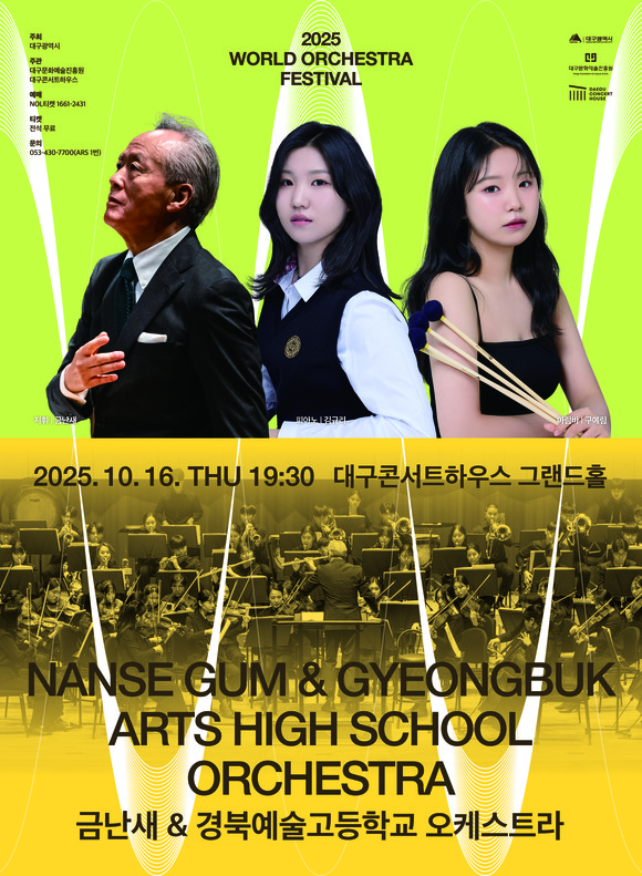 ‘다양성’을 주제로 한 올해 월드오케스트라페스티벌은 국내외 유수 오케스트라뿐만 아니라 스쿨 오케스트라까지 폭넓게 초청해, 시민들에게 다채로운 음악적 경험을 제공하고 있다. 이번 공연은 거장 금난새 지휘자와 경북예고 오케스트라와 함께 무대에 올라 클래식 음악의 미래를 조명하고 지역 예술교육의 성과를 현장에서 체감할 수 있는 뜻깊은 자리가 될 것으로 기대된다.