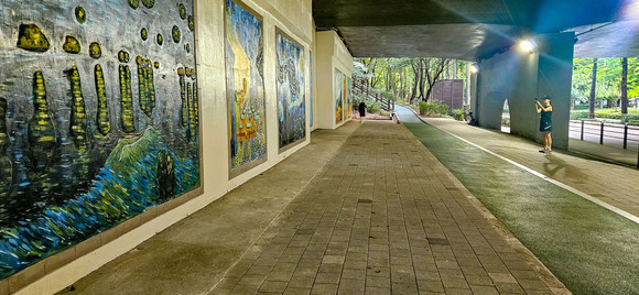 이번 사업은 강남둘레길 재정비와 연계해 양재천의 가치를 높이고, 시민들에게 쾌적하면서도 매력적인 공간을 제공하기 위해 추진됐다. 높이 4.9m, 길이 41.7m 규모의 교각 하부 보행통로 벽면에 ‘론강의 별이 빛나는 밤’, ‘밤의 카페 테라스’, ‘해바라기’ 등 고흐의 대표작 7점이 벽화로 재현됐다. 단순한 장식이 아니라, 페인트와 타일을 결합한 방식으로 내구성과 예술성을 동시에 살렸다.
