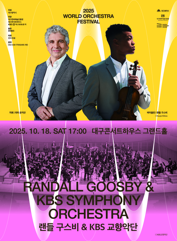 2025 월드오케스트라페스티벌의 KBS교향악단 공연이 오는 18일 오후 5시 대구콘서트하우스 그랜드홀에서 열린다. KBS교향악단이 출연하는 이번 공연에는 70대 거장 지휘자 피터 운지안과 20대 스타 바이올리니스트 랜들 구스비가 협연자로 나서, 세대를 아우르는 특별한 무대를 선보인다.