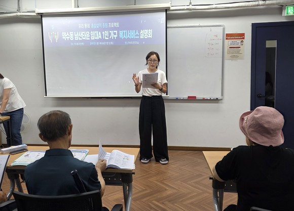 아울러 약수동은 행정의 한계를 넘어, 민간과의 협력을 강화하고 복지서비스의 폭을 한층 더 확장했다. 지난 9월 11일에 1인가구를 대상으로 복지관, 주거안심센터, 정신건강복지센터 등 8개 유관기관이 참여하는 ‘알아두면 유익한 복지설명회’를 개최해, 주민들에게 다양한 복지 정보를 제공했다. 현장에서는 1:1 상담을 진행해 주민들에게 맞춤형 복지서비스를 연계하기도 했다.