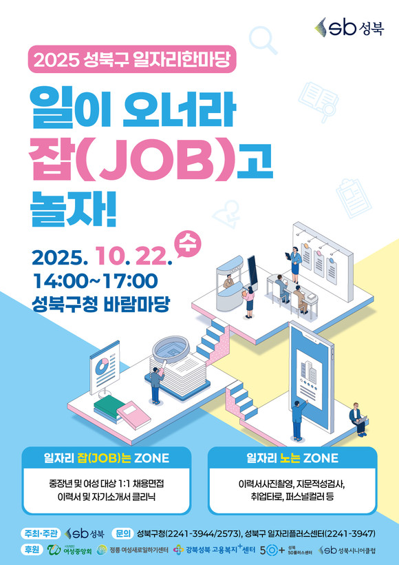 서울 성북구(구청장 이승로)가 오는 22일 오후 2시 성북구청 바람마당에서 구민의 취업 갈증을 해소하기 위한 ‘2025년 성북구 일자리 한마당’을 개최한다.