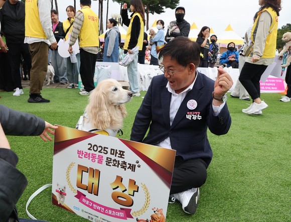 박강수 마포구청장과 백남환 마포구의회 의장을 비롯한 100여 팀의 반려가족이 참여해 반려견과 함께 달리고 응원하며 따뜻한 교감의 시간을 나눴다.