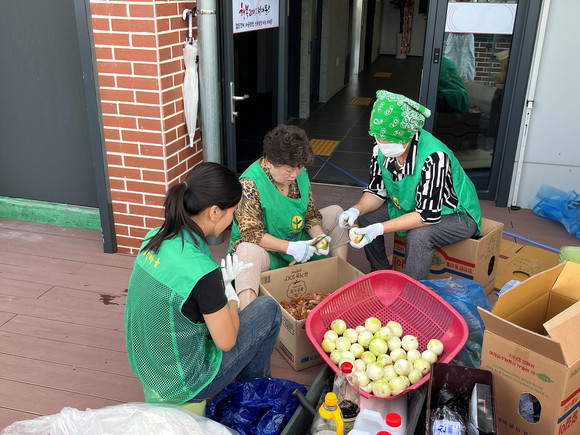 부녀회원들은 계절에 맞는 제철 식재료로 정성스럽게 직접 만든 소불고기, 열무김치, 버섯알장조림을 30가구에 전달했으며 인사를 나누고 안부도 확인했다.